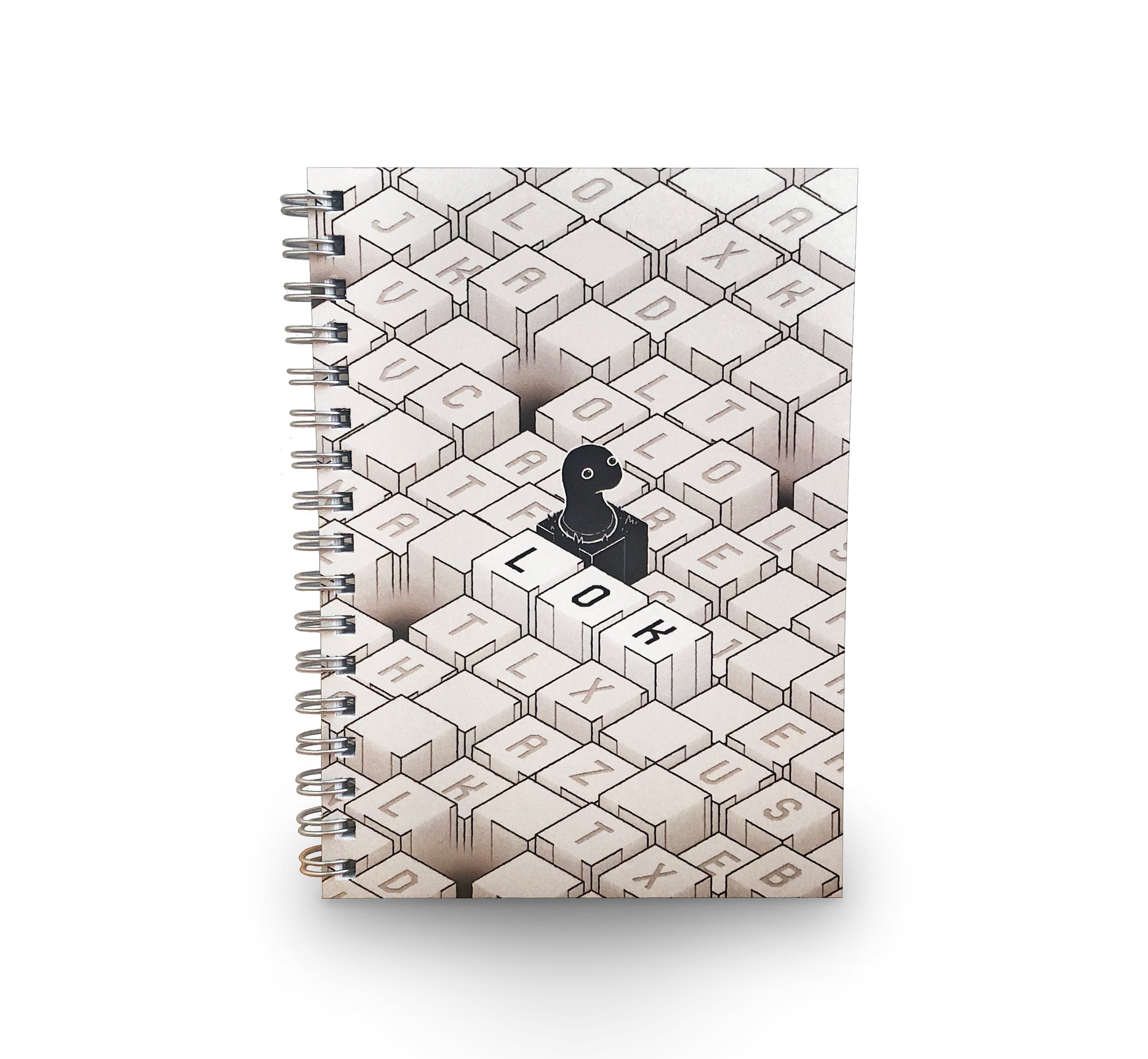 LOK is spiral-bound and it includes a transparent sheet that can be placed over any page and drawn on with a dry erase marker (marker not included).